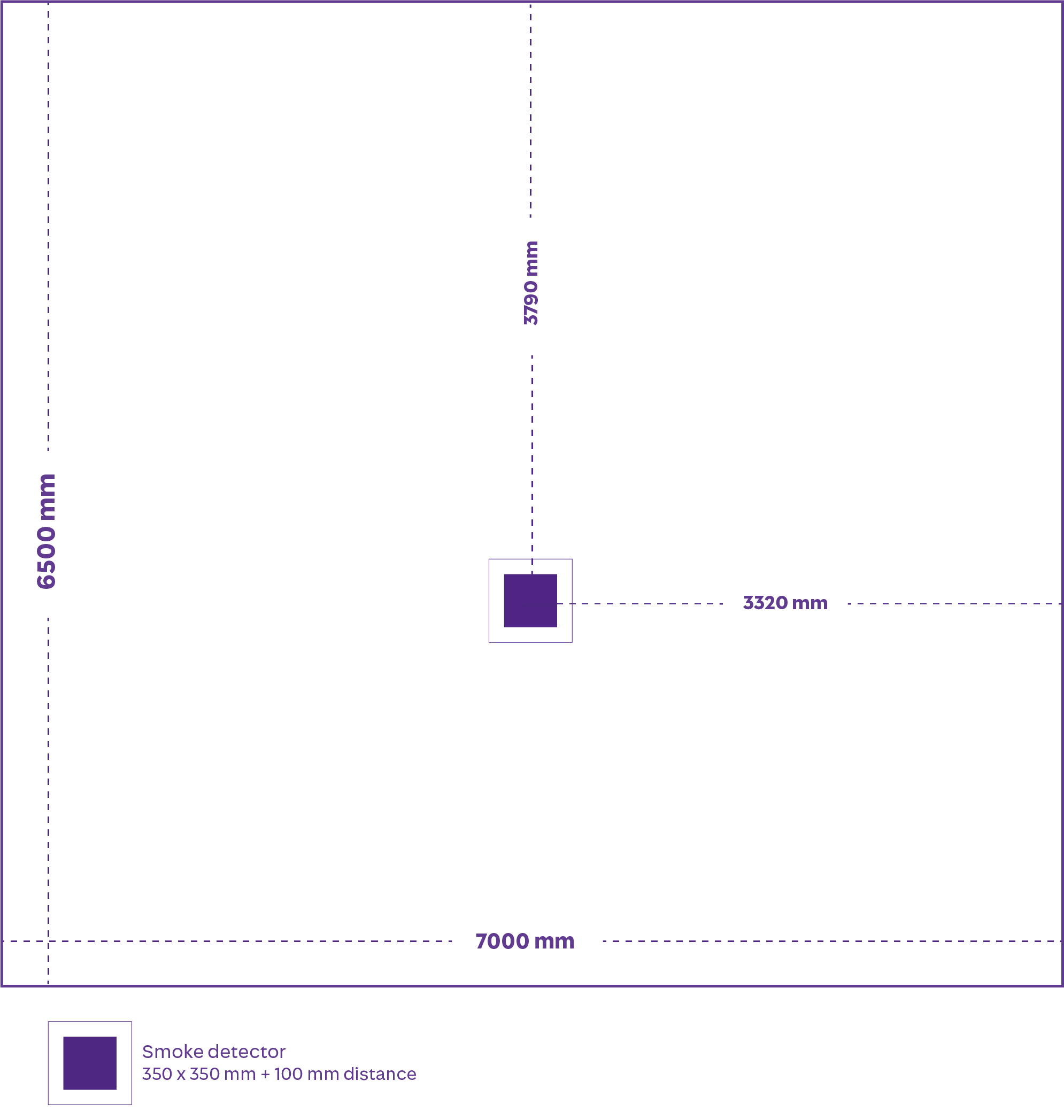 Væggen er udstyret med en røgdetektor, og dit design skal derfor indeholde et udskåret felt, så sensoren forbliver synlig. Sørg for at holde en afstand på mindst 100 mm omkring sensorområdet for at sikre optimal funktion og overholdelse af kravene. Brug InDesign-template for at placere elementerne korrekt i forhold til røgdetektoren.