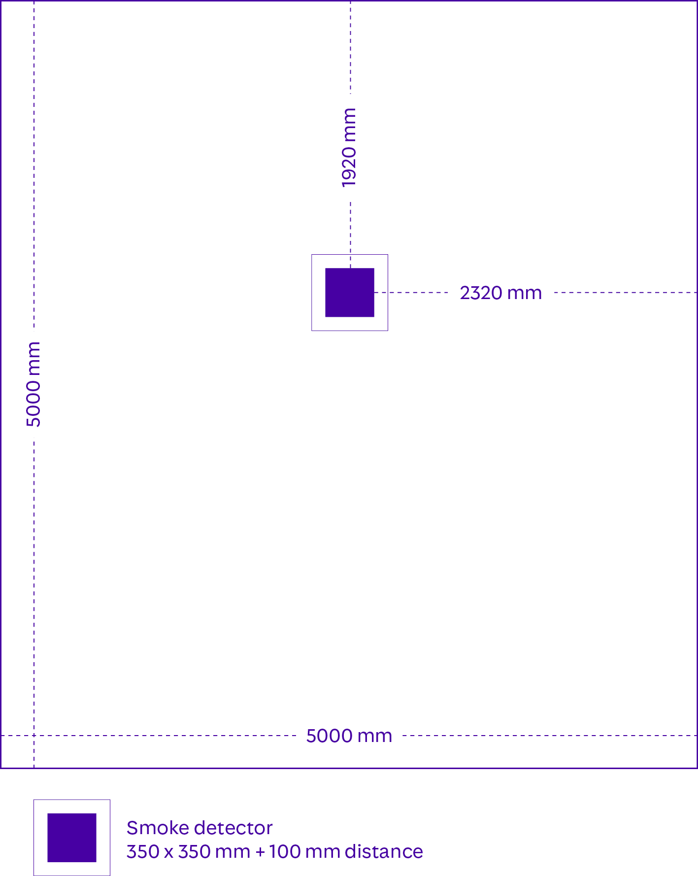 Væggen er udstyret med en røgdetektor, og dit design skal derfor indeholde et udskåret felt, så sensoren forbliver synlig. Sørg for at holde en afstand på mindst 100 mm omkring sensorområdet for at sikre optimal funktion og overholdelse af kravene. Brug InDesign-template for at placere elementerne korrekt i forhold til røgdetektoren.