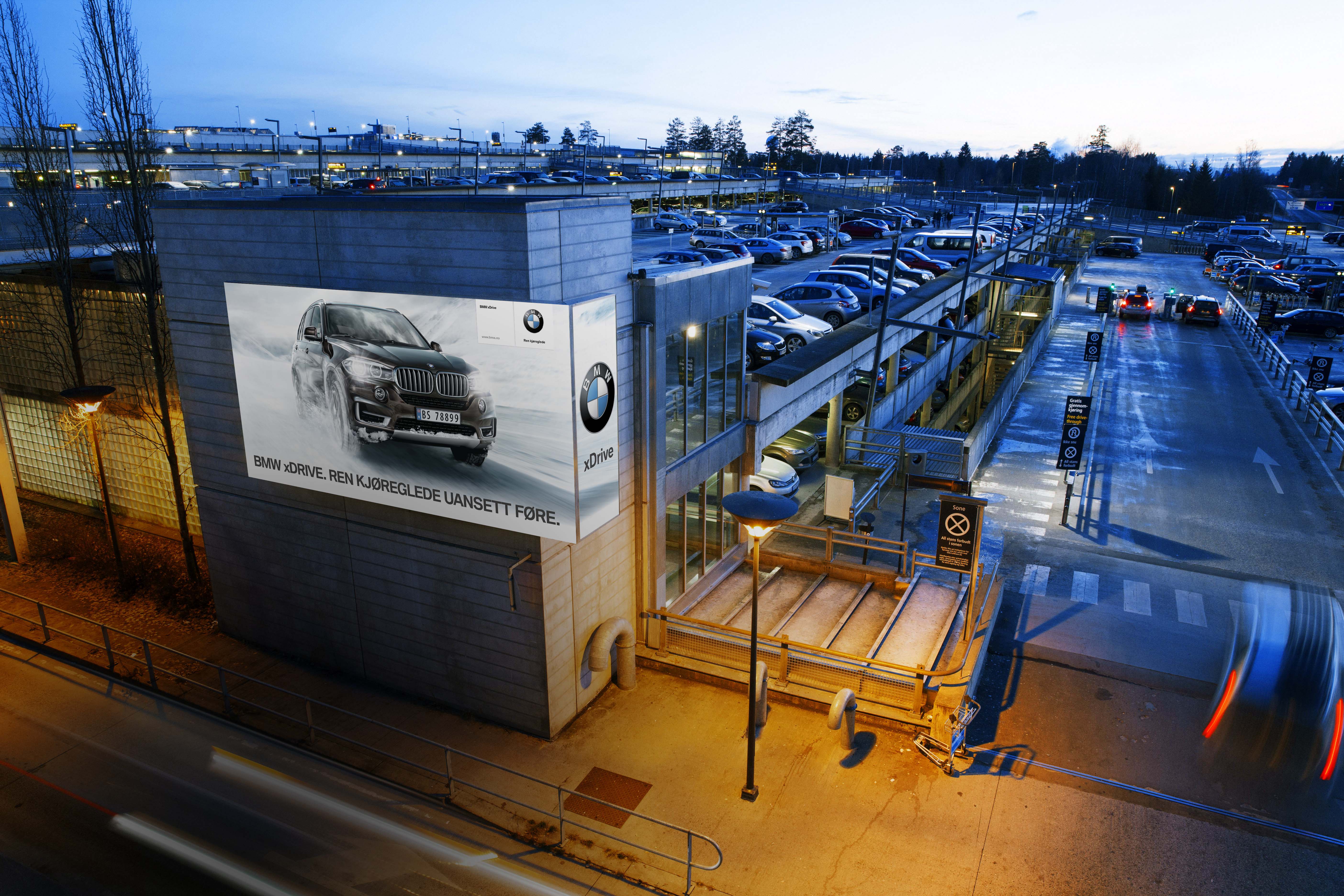 With its unique position just outside the main entrance to Oslo Airport, you'll find Board Carpark P10. It is illuminated from the back and targets all travellers on their way in and out of the airport.