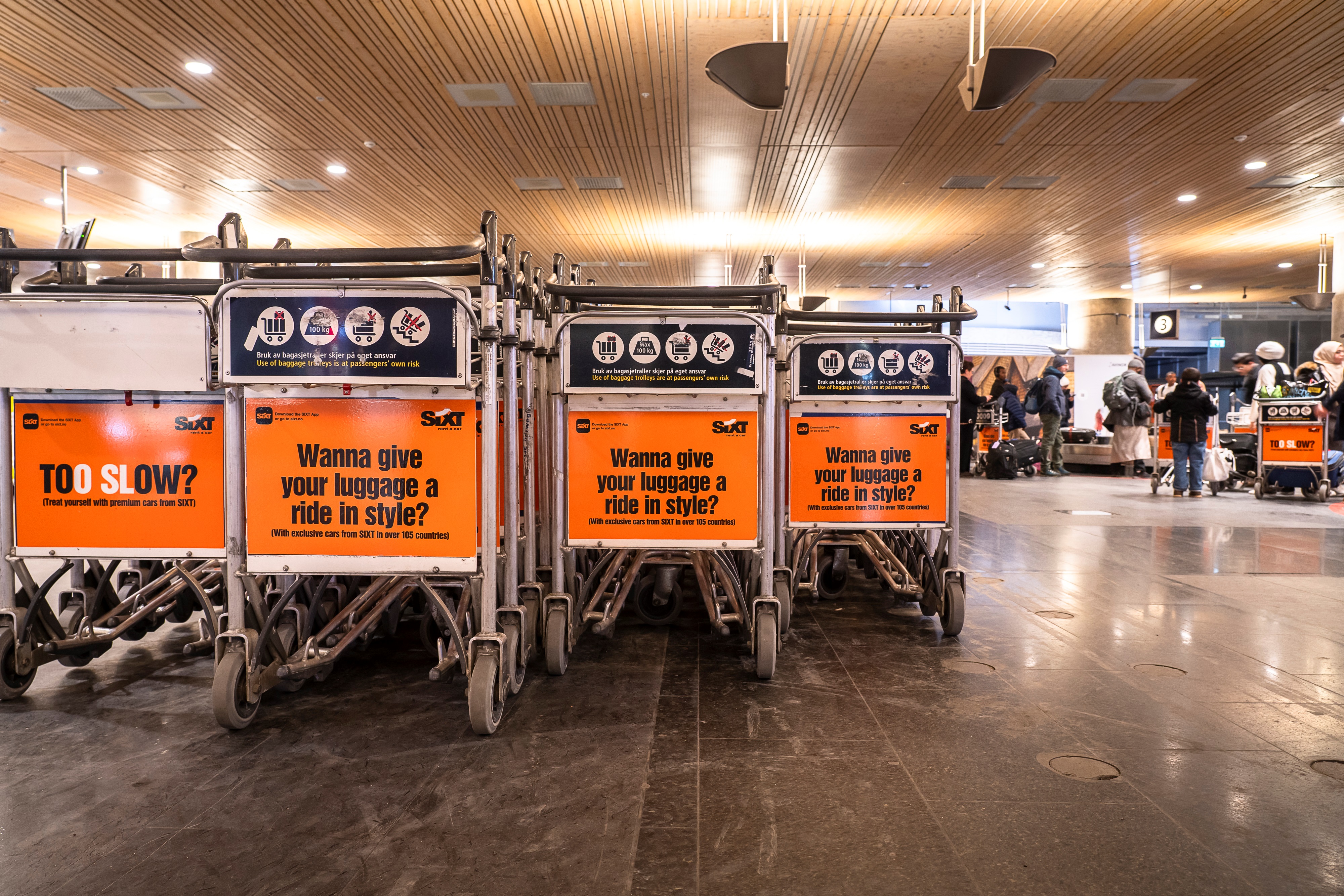 Baggage trolleys are an effective and mobile advertising surface that follows travellers from the baggage hall to the exit. At Oslo, Bergen, Stavanger and Trondheim airports, the trolleys ensure high visibility both at home and abroad, among a wide audience with plenty of time and focus on practical tasks. Perfect for brands that want broad exposure in a travelling and buying market - with a message that literally travels with you.