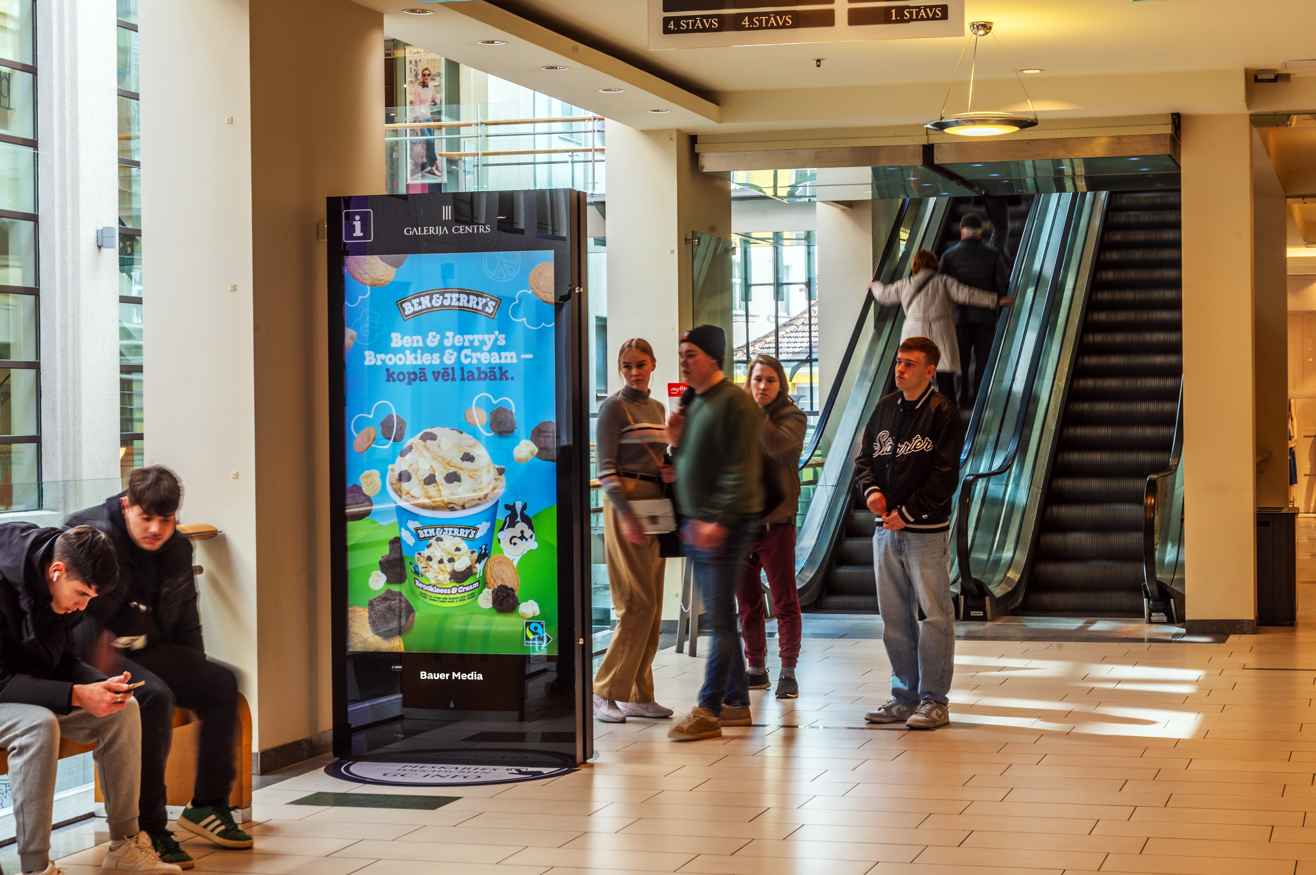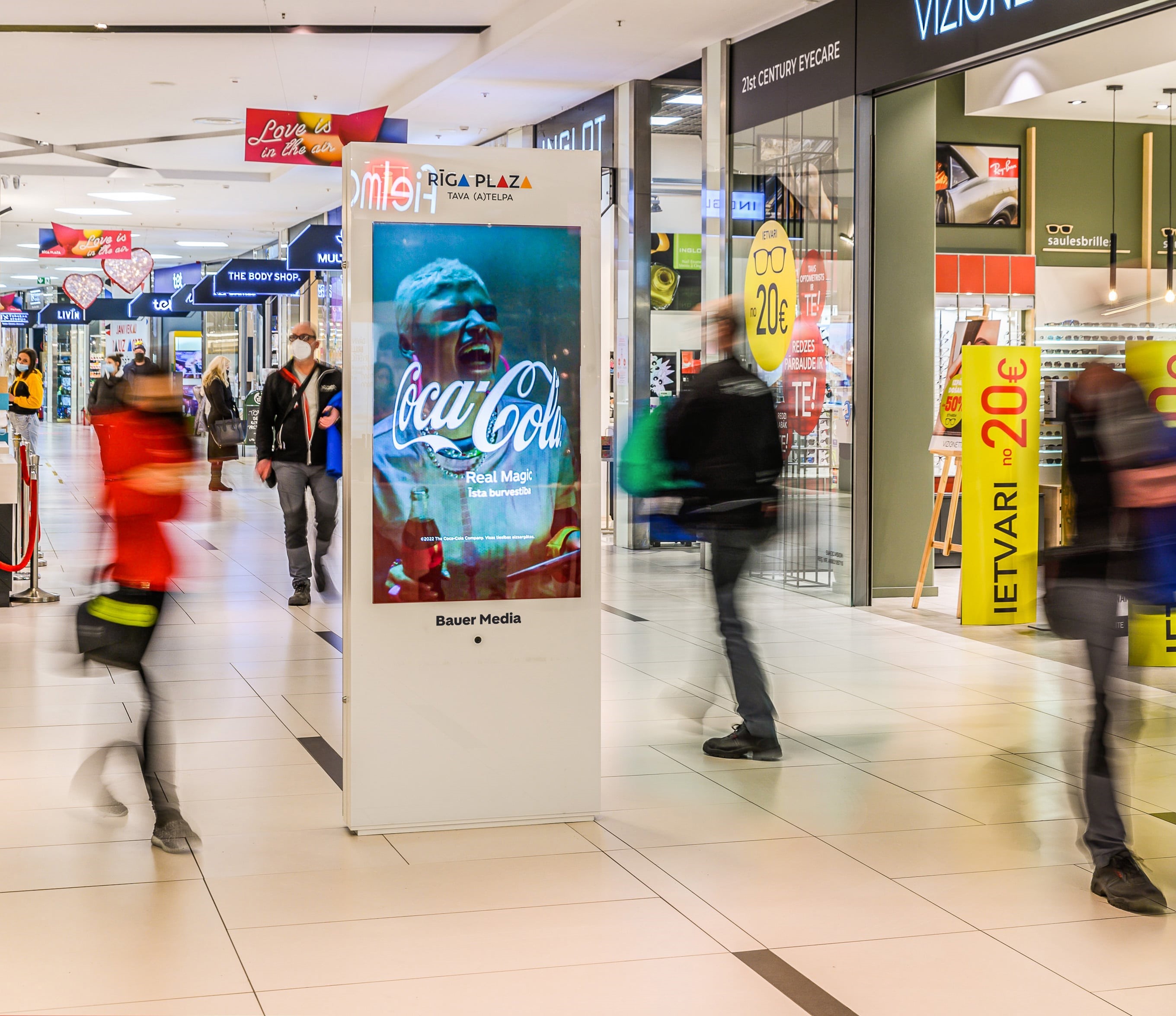72% tirdzniecības centru apmeklētāju pamana reklāmu monitorus tirdzniecības centros (Kantar), kas apliecina digitālās reklāmas augsto redzamību un efektivitāti.
